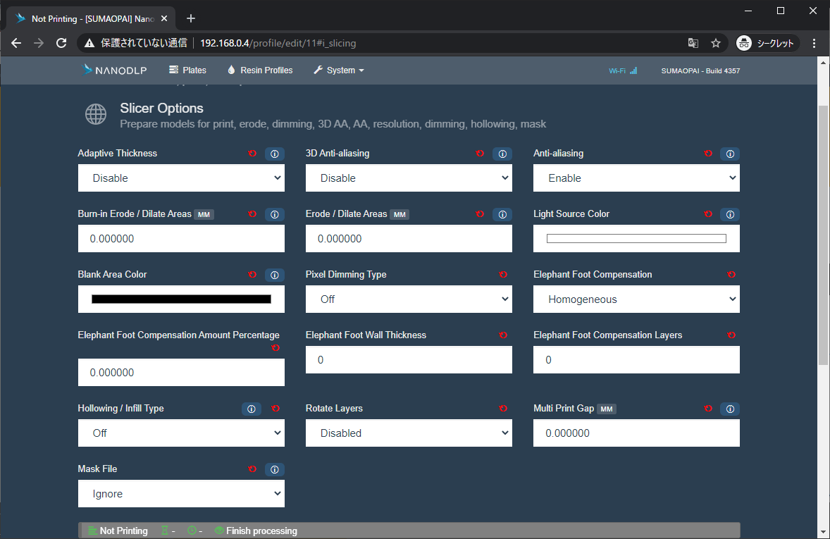 Elephant foot compensationに関しては、レジンプロファイルのスライサーオプションに追加されています。この設定は、以前私がリクエストした機能でもあるのですが、バーンインレイヤーにおける、エレファントフット現象の補正を行ってくれます。
