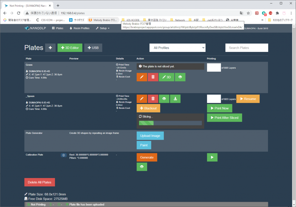 GrassはSTLでSpooはSLCでアップロードしたのですが、緑の3Dマークが消えてしまってるのがわかるかと思います。サムネ用にUPしたのでステータスがSlicingなのは無視してください