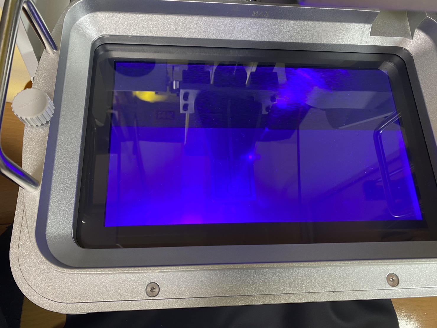 初めての光造形プリンターを導入された方で、実際に事故が起きてしまった例なのですが、逆転してしまい焦ってワタワタしているうちに、トップを突き破ってしまったようです。
