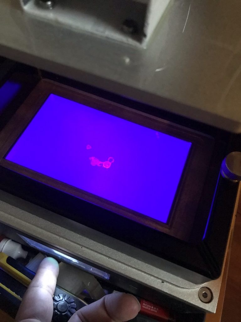 [トラブル] lcdも死亡 トラブル X Facebook0 コピー 2020.10.312021.02.20 ledが調子を戻したら、今度はlcdががががが、もうやだ、この子。 ブラック ホワイト OnでもOffでも光が透けてるので使い物にならず、造形テストもできないのでしばらく休止かな。 アルミテープで遮光して、左右のところで造形できないかなぁ