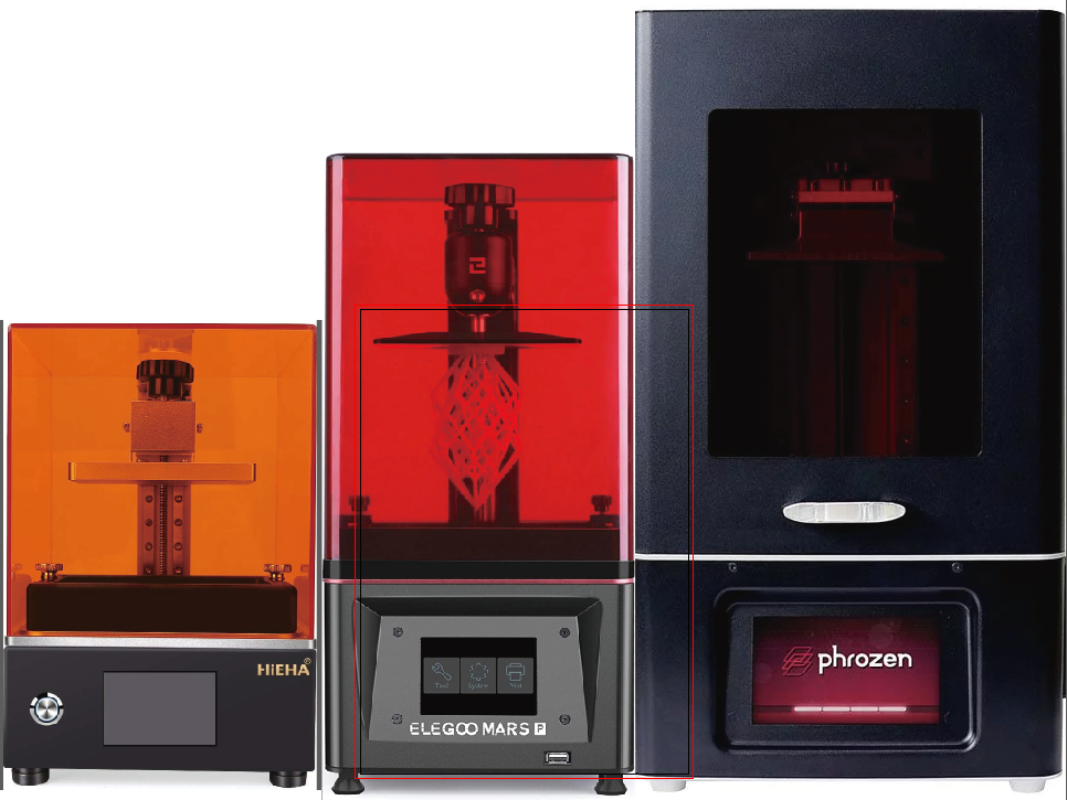 雑コラではありますが、同じ倍率比で並べた場合のSQ-1 ElegooMars PhrozenShuffleになります。