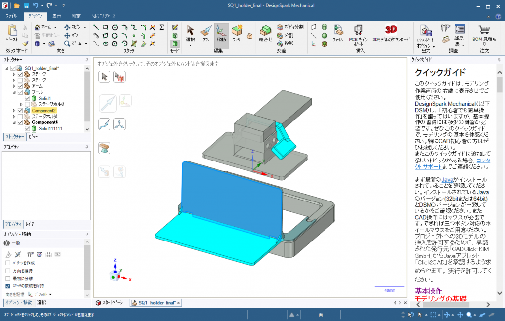 変なこだわりばかりしたせいで、1発成功とはなりませんでしたが、ホルダーの作成時にある程度SQ-1のモデルができていたので、比較的すんなりと設計できました。